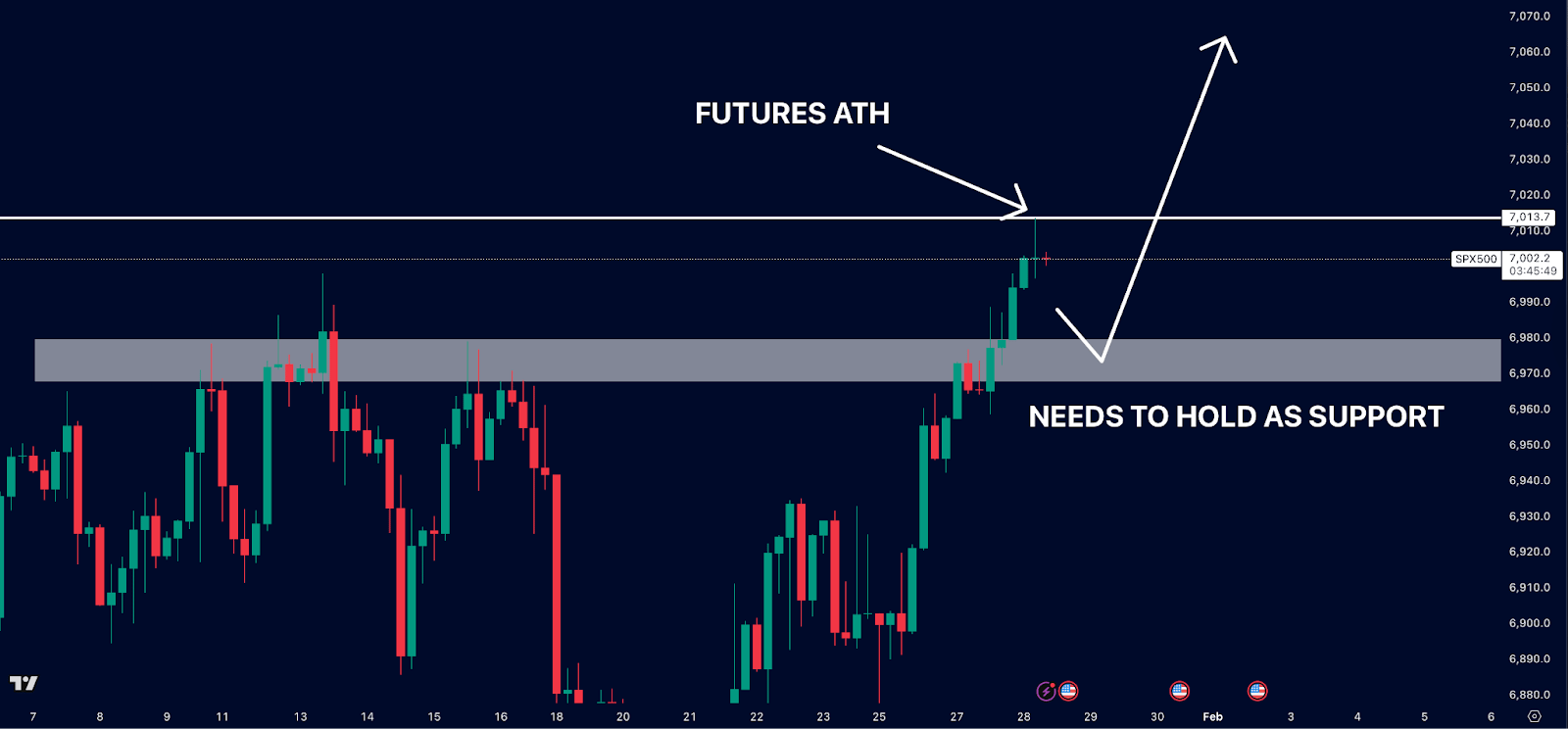 The S&P 500 reached an all-time high on Tuesday as it hit above $7,000 in futures hours.