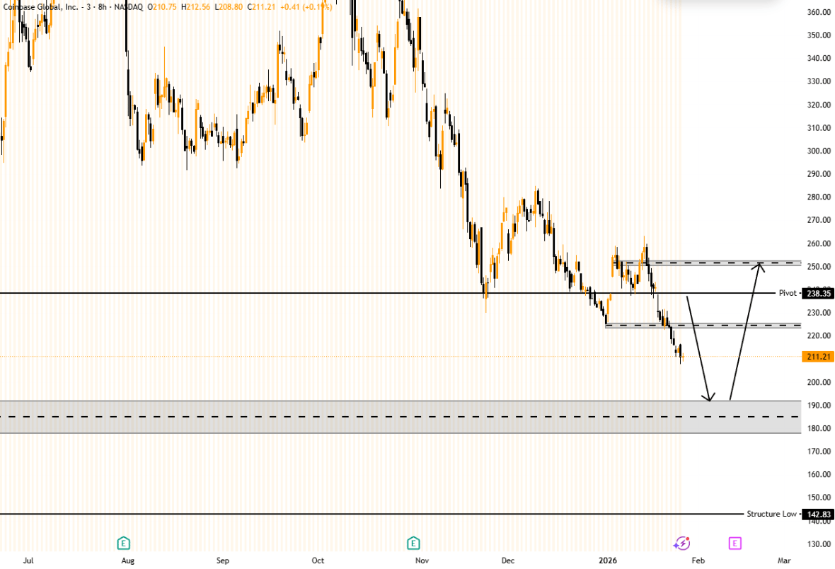 COINBASE $COIN 8hr - TradingView