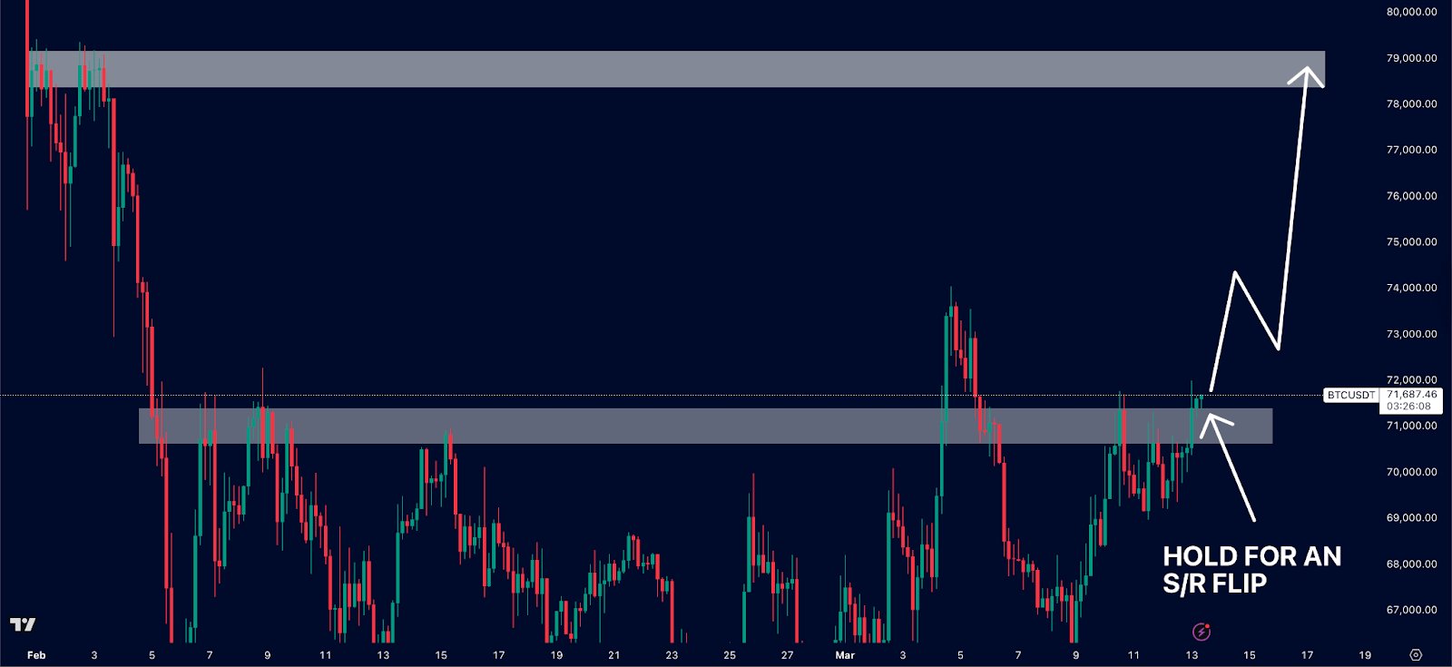 If the grey box holds as support, then we could see bitcoin rally towards $79,000 next.