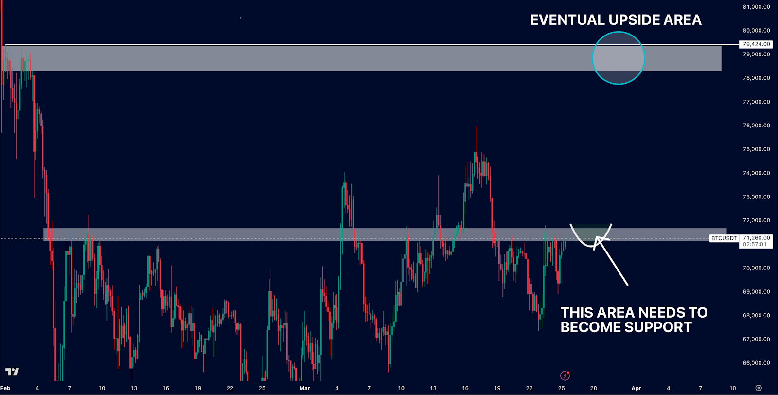 The $79,000 region is in waiting, as that holds the next supply area alongside a clear area for liquidity.