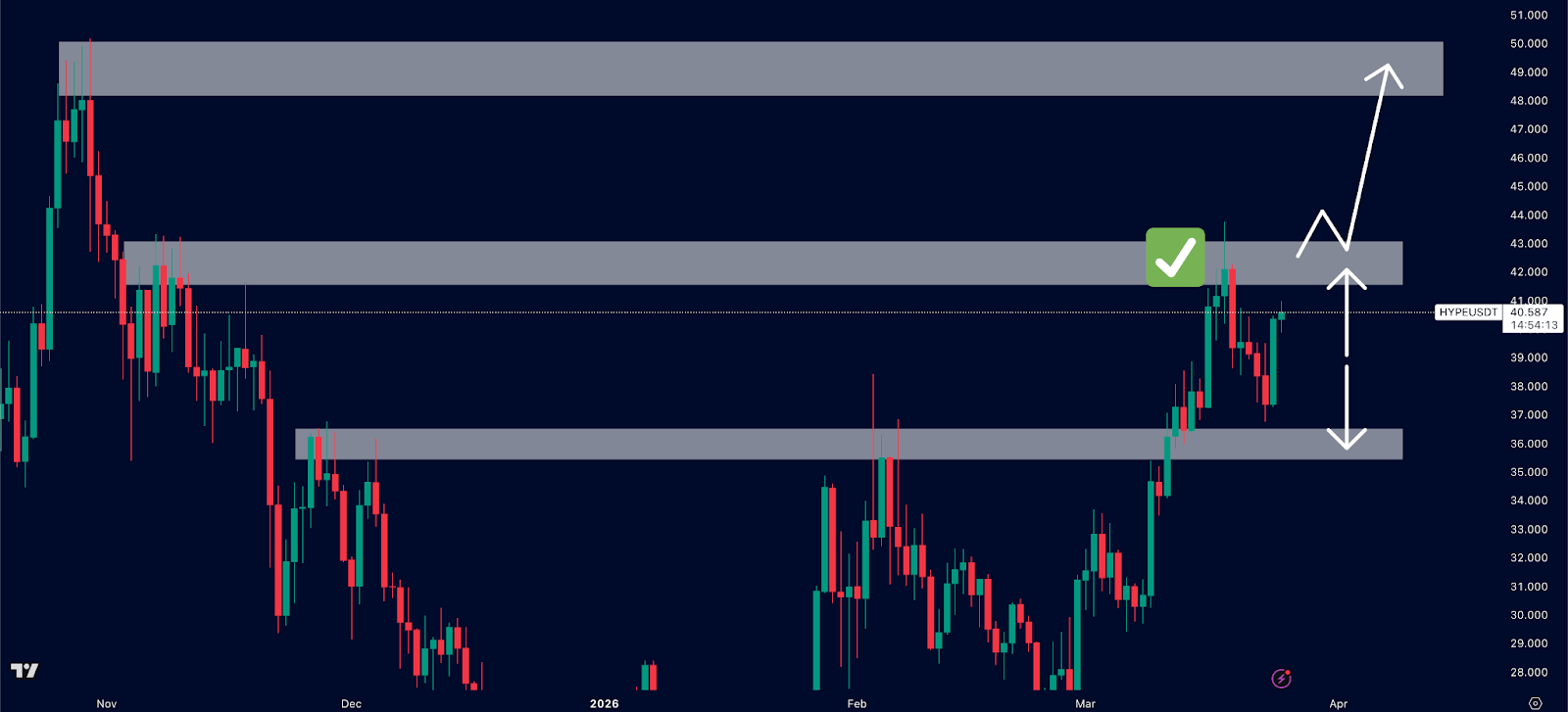 From there, HYPE has rejected and retraced, giving it a clear area to trade between for the meantime.