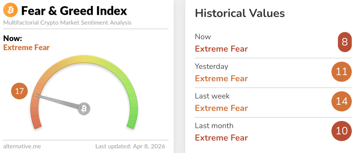 The Fear and Greed Index remains in Extreme Fear at 17.