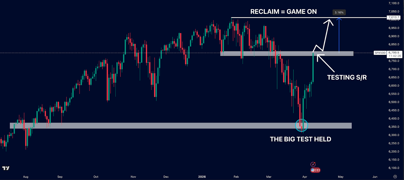 The big test came in late March into April as it tested demand down at the $6,350 S/R region.