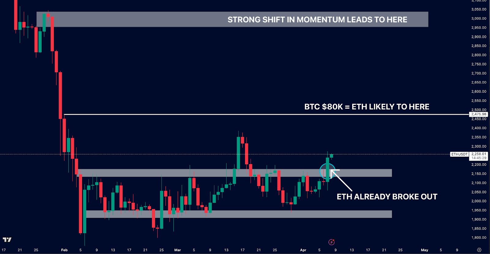 In reality, the theory of $80,000 BTC and $2,500 ETH may even be conservative given its strength this week.
